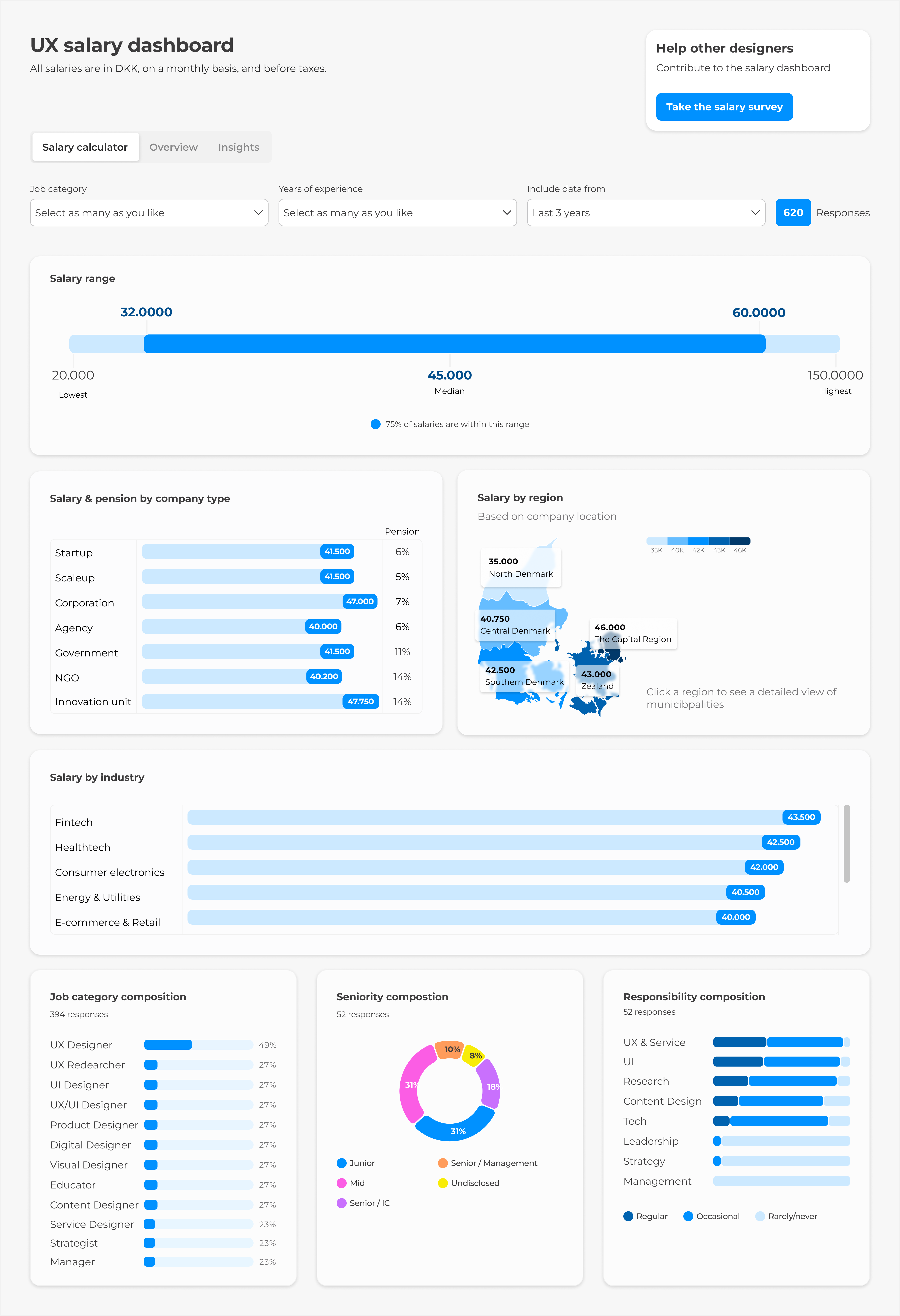 There is no reliable data in the UX field in Denmark and as a result, many designers are underpaid and face challenges in securing fair compensation as experienced by many of UX Unite's members. The company struggles to find the workforce to generate yearly reports and chasing individuals to fill out salary surveys.